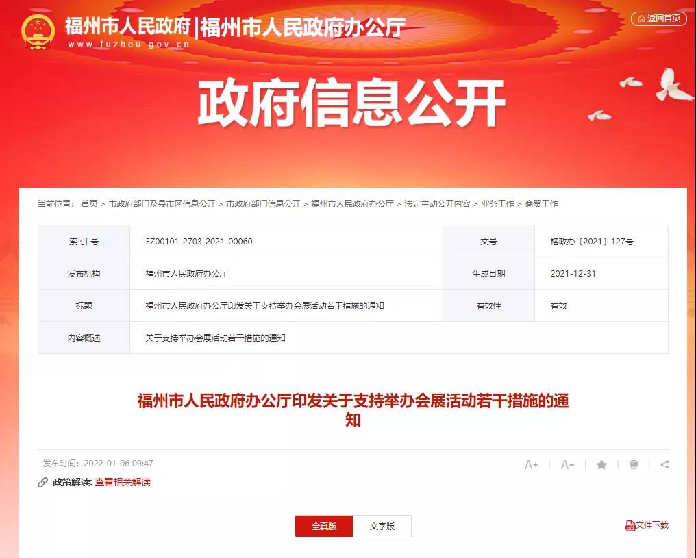 1月4日,福州市政府办公厅印发了《关于支持举办会展活动的若干措施》(榕政办〔2021〕127号,以下简称《若干措施》)。福州市商务局现就有关问题解读如下:01《若干措施》出台的意义和背景2020年疫情发生后,福州市会展业受到严重冲击,大量展会停办、延办,会展企业受到极大的损失。2021年1月份,福州市委市政府印发了《坚持“3820”战略工程思想精髓加快建设现代化国际城市行动纲要》,打造东南会展高地是扩大内需专项行动的重点任务之一。《行动纲要》发布后,2021年福州全市共举办展会活动52场,展会规模约104万平方米,同比2020年增长67%,规模以上(3万平方米以上)的展览8场,举办了第44届世界遗产大会、2021国际龙奖IDA年会等国际性会议。并自主创办了首届数博会、首届跨境电商交易会、首届预制菜产业博览会等本土展会,福州全市办展气氛热烈,成效显著,但疫情防控的成本较高。02《若干措施》主要原则和目标《若干措施》的主要原则:一是对疫情下办展环境进行进一步优化;二是加大力度支持举办展会;三是鼓励创办本土展会。《若干措施》是为了实现会展业发展目标:到2022年底,在疫情防控常态化下举办各类展会规模完成130万平方米,同比增长25%,疫情防控常态化下办展办会环境进一步优化,福州在全省会展业的影响力得到进一步提升,引领性得到进一步加强。03《若干措施》施行日期《若干措施》自发布之日起实施,有效期至2023年12月31日。2021年1月1日起举办的展会参照本措施执行。04《若干办法》修改的主要内容《若干措施》主要包括七条,分别为:1.缩短展会活动审批期限为避免因疫情防控批复时间较晚,造成展会延期举办或现场拆展的不良后果,区(县、市)疫情防控指挥部接到展会申请后,文件处理各环节原则上不超过48小时(特殊情况可延长至72小时),6个工作日内出具审批意见。商务、卫健、公安、消防等各个部门协同合作,做好政务勤务等工作,保障福州市会展业正常运行。2.对延期举办的展会给予资金支持为减少主办方展会延期举办的损失,在《福州市展会发展专项资金管理办法》(榕政办〔2019〕118号)政策“每平方米资助30元”的基础上,经疫情防控指挥部审批的展会,因疫情原因延期举办且符合资助条件的,资助资金标准在《管理办法》规定的资助标准基础上提高20%,单个展会资助增幅不超过50万元。3.提高自主创办本土展会的补助标准为鼓励福州市会展企业自主创办本土展会。新创办的2万平方米以上的国家级展会,补助标准从原每平方米60元提高到每平方米100元。4.加大展会招揽奖励力度鼓励围绕福州市16条重点产业链,招揽产业链上下游相关展会来榕举办。对符合《福州市展会发展专项资金管理办法》(榕政办〔2019〕118号)招揽要求的单位,在原有的招揽奖励基础上再增加30%,单个展会招揽奖励增幅不超过20万元。5.给予办展防疫补助当前疫情尚未过去,展会疫情防控不容放松,据了解,疫情期间办展较平常时期增加了防疫安保、消杀及场外防疫搭建等费用,因此给予在疫情期间举办的展会每平方米5元的防疫资助,单个展会场租资助不超过20万元(据实核拨)。6.给予政务勤务保障资助由于疫情期间需做好相应的展会防疫工作,增加志愿者、安保、救护车、医护人员,场馆消毒和置备防疫物资等支出,展会越大则相关费用会随之增加。因此对每场规模以上(3万平方米以上)展会的政务勤务保障补助标准从2020年《若干措施》的5万元增加到20万元。7.优化疫情期间会展营商环境(1)主(承)办方应按照有关部门要求,做好疫情防控及报批等有关工作。此项是举办展会的先决条件,必须按照规定做好相关工作方可举办。(2)因疫情形势下展会主办方各项支出加大,疫情防控是举办展会的必要工作,是保障展会安全举办的客观要求。为促进我市会展业健康发展,优化福州市会展营商环境,帮助企业做好疫情防控工作,鼓励场馆方不收取展会防疫用地的费用。(3)目前疫情条件下主办方举办展会各项成本均增加,为营造健康的办展环境,压缩利益输送空间,充分保障办展单位权利,禁止各相关部门及场馆方为主(承)办方以任何名义指定防疫、安保、广告等执行单位。05下一步的工作要点一是进一步优化福州市会展营商环境,推动福州市会展弯道超车;二是疫情防控常态化下大力引进国家级展会。利用各种资源、渠道申办国家级大型展会和会议落地福州举办;三是大力培育本土展会企业,努力提升福州市会展业整体规模和综合竞争力;四是最大限度发挥政策效应,及时兑现好、落实好政策;五是加大政策宣传力度。 (来源:福州市商务局)